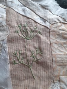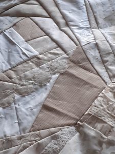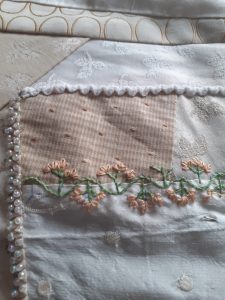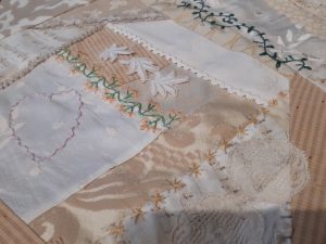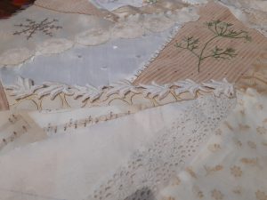 Après la réalisation du crazy, il faut se lancer dans les broderies, les perles…
