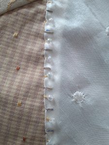 Après avoir choisi mes tissus et tracé le patron sur l’envers, je vais pouvoir commencer :